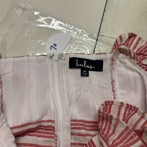 Lulus Linen Cotton White Red Striped Ruffle Culotte Jumpsuit Size Medium Romper