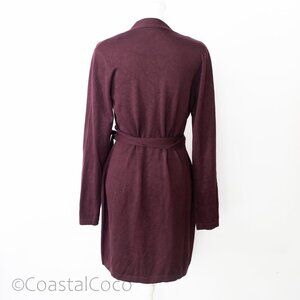 Lulus Literary Lover Plum Burgundy Wrap Sweater Dress L Stretchy Office Comfort