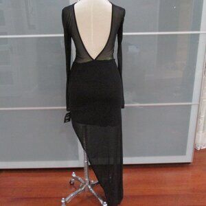 Lulus Long Sleeve Band Top Sheer Plunging Back Asymmetrical Hem