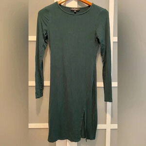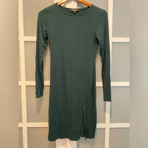 Lulus Long Sleeve Emerald Green Rayon/Spandex Bodycon Midi Dress Slit EUC Small