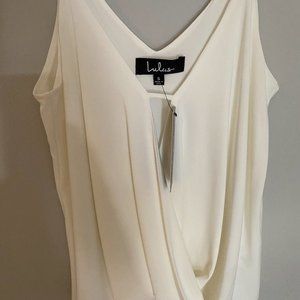 Brand new, never worn. Fully lined. Top measures 3" longer at back. 95% Polyester, 5% Spandex.