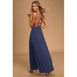 Lulu's Lost In Paradise Navy Blue Strappy Maxi Formal Dress S