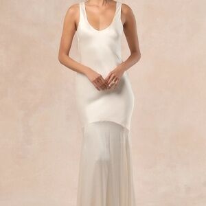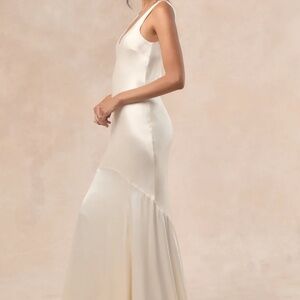Brand new, never worn satin wedding dress. No alterations, true size medium. Incredibly comfortable and timeless