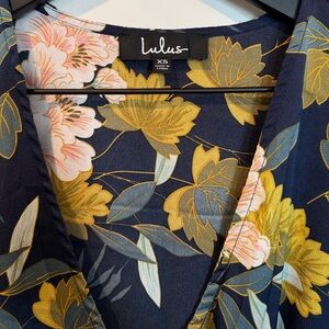 Lulus Love Is Life Navy Blue Floral Print Satin Wrap Dress - Size X-Small