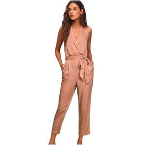 Lulus Love Like That Mauve Satin Sleeveless Jumpsuit Sz Small NWT