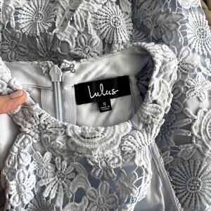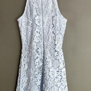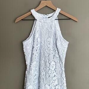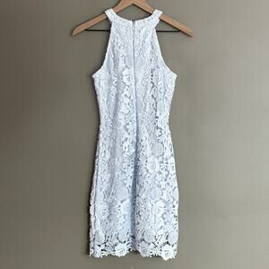 Lulu's Love Poem Light Blue Lace Mini Dress Size Small Halter Crochet Cocktail