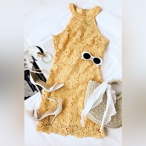 Lulu’s Love Poem Yellow Lace Mini Dress
