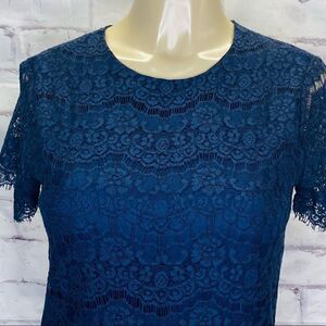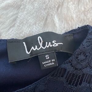 Lulu’s Love You For Eternity Navy Blue Lace Shift Dress size S