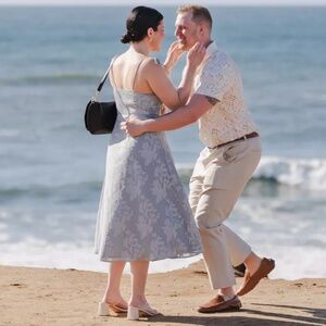 Arrive looking like the guest of honor in the Lulus Loveliest Looks Dusty Blue Floral Jacquard Tie-Strap Midi Dress! Woven jacquard fabric, with metallic silver threading and a floral design, shapes this dress that has tying straps and a sweetheart neckli