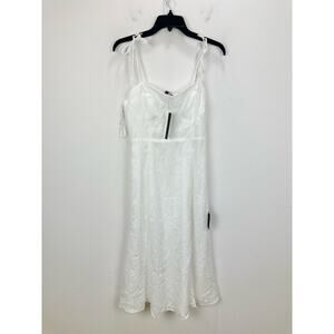 Lulus Loveliest Looks White Floral Jacquard Tie-Strap Midi Dress Medium NWT