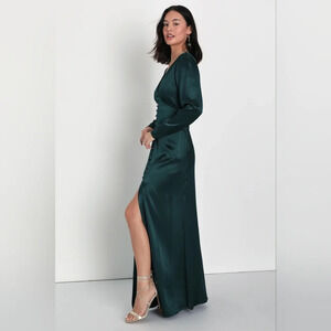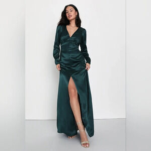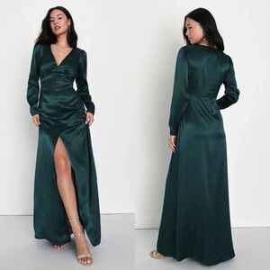 Lulus Lovely Essence Emerald Green Satin Long Sleeve Maxi Dress XS Wedding Party NWOT. See all pictures for details. Currently SOLD OUT online.