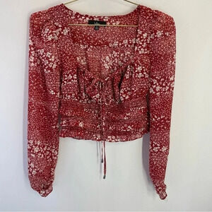 Lulu’s Lovely Wishes Red Floral Print Long Sleeve Crop Peasant Top