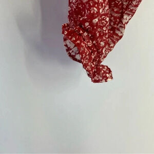 Lulus Exclusive! Add a touch of whimsical with the Lulus Lovely Wishes Red Floral Print Long Sleeve Crop Top! Lightweight woven chiffon, with a red and white floral print throughout, forms a square neckline and billowing long sleeves with elastic ruffle cuffs. A blousy bodice features two drawstring ties (with silver aglets) that create a keyhole cutout atop a tiered, smocked silhouette that ends at a cropped hem.