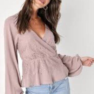 Lulu's Loving Arms Taupe Lace Long Sleeve Peplum Top Size Small
