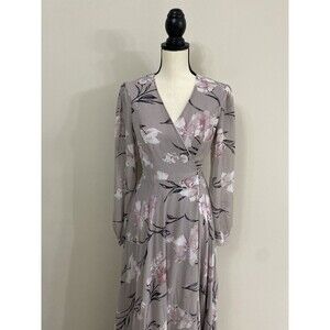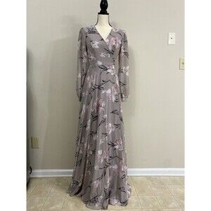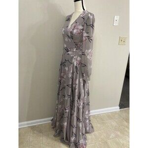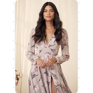 Lulus Loving You Dusty Purple Floral Print Long Sleeve Wrap Maxi Dress Size S