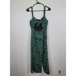 Lulus Lush Womens Small Green Floral Cropped Wide Leg Sleeveless Jumpsuit Fairy