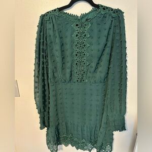 Lulus Lust Or Love Emerald Green Embroidered Lace Long Sleeve Dress - Size XL