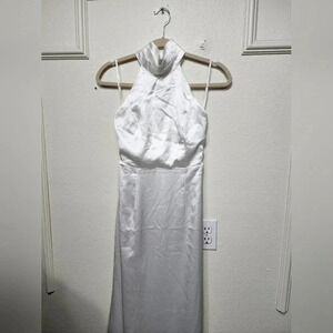 Lulus Luxe Destiny White Satin Backless Halter Mermaid Maxi Dress Bridal. New without tags. See all pictures for details. Currently SOLD OUT.
