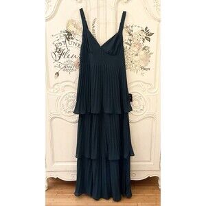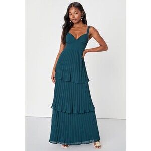 Lulus Luxe Perfection Dress Women's XL Emerald Green Maxi Pleated Tiered NWT