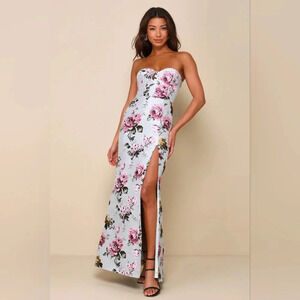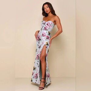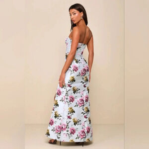 Lulu's Luxe RSVP Light Sage Green Floral Jacquard Strapless Maxi Dress S Wedding NWOT. See all pictures for details.
