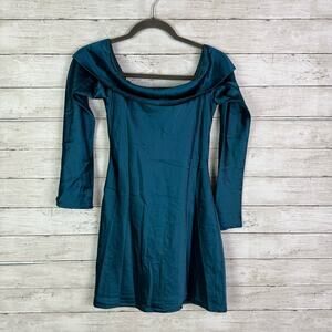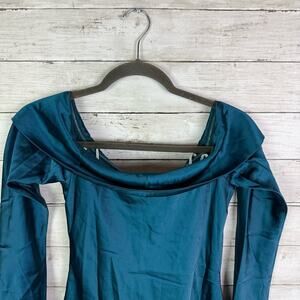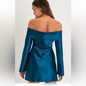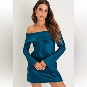 Lulus Luxurious Vision Teal Satin Off-the-Shoulder Mini Dress Size Small