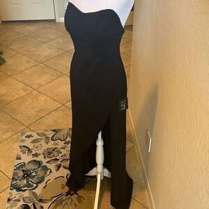 Lulus M Strapless Bustier Corset Maxi Dress Solid Black High Slit Evening Formal