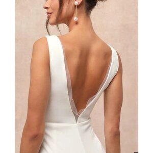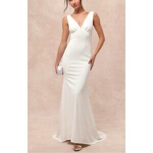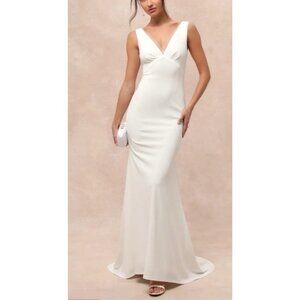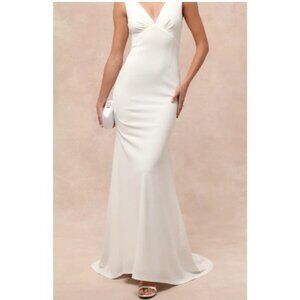 Lulus M White Formal Gown V Back Captivating Promise Mermaid Maxi Stretch NEW
