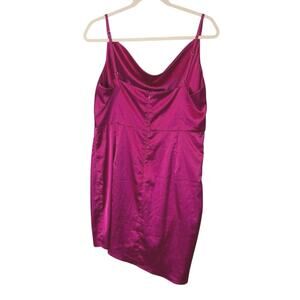 Lulus Magenta Satin Cowl Neck Ruched Mini Dress XL Asymmetrical Party