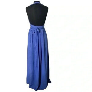 Lulu's Magical Movement Periwinkle Blue Wrap Halter Neck Maxi Dress Size M