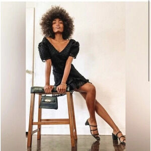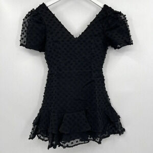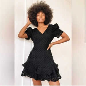 Lulus Magnificence Black Swiss Dot Puff Sleeve Ruffled Mini Dress Size XS