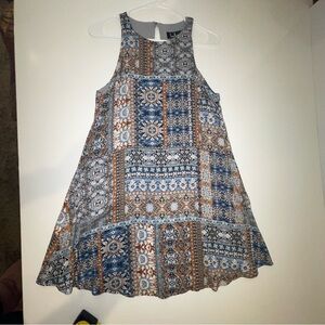 Lulu’s Major Grey Print Swing Dress Patchwork Blue Grey