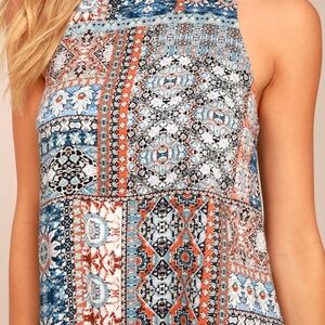Show off your artistic side with our Lulus Design Major Grey Print Swing Dress! Lightweight and perfectly soft woven rayon has a grey, black, blue, and orange print that covers the sleeveless, swing bodice with rounded neckline and darting.