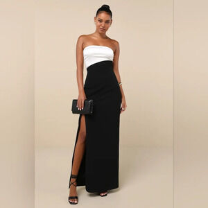 Lulus Majorly Sophisticated Black and White Strapless Maxi Dress M Wedding Party NWT. See all pictures for details. currently SOLD OUT online.