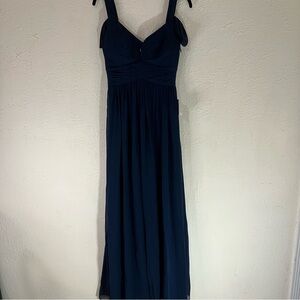 Brand new has never been worn tag is still attached no rips, tears or stains. You'll be the hit of any dance floor in the Lulus Make Me Move Navy Blue Maxi Dress! Double shoulder straps lead into a gathered surplice bodice with a sweetheart neckline. Pleated empire waist flows into an elegant woven maxi skirt. Hidden back zipper with clasp.