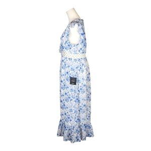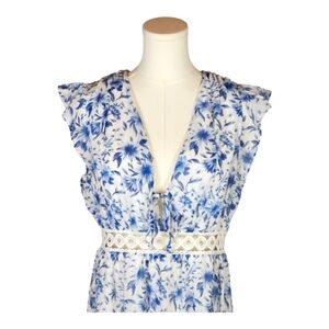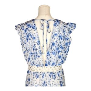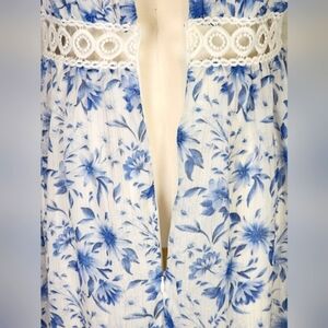 Lulus Make Things Shine White Blue Floral Midi Lightweight Flowy Dress L