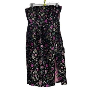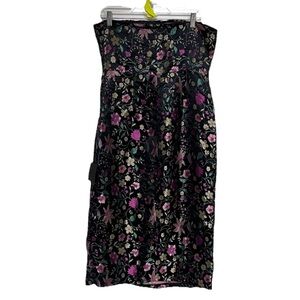 Lulus Make a Move Black Satin Floral Jacquard Asian Whimsical Goth Midi Dress L