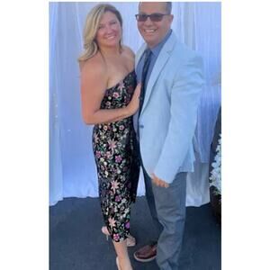 Lulus Make a Move Black Satin Floral Jacquard Strapless Midi Dress Size L