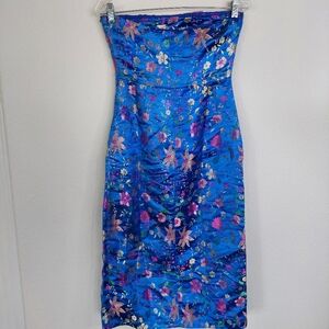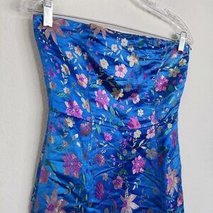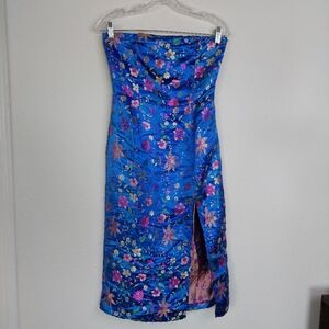 Lulus Make a Move Floral Asian Inspired Satin Strapless Midi Dress Size Small. Pre-owned