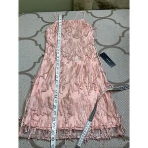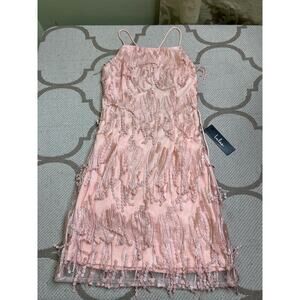 Lulus Making Magic Blush Pink Fringe Lace-Up Mini Dress, size XS