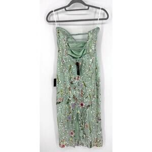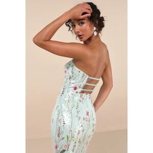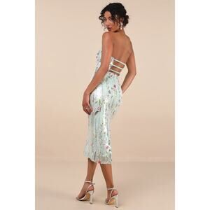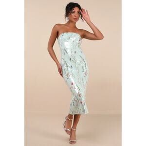 Lulus “Malene” Mint Floral Sequin Strapless Midi Dress – Small NWT