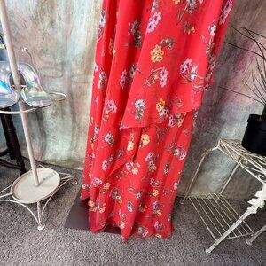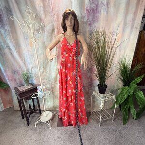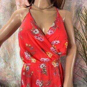 ๐Lulus Many Opportunity Romantic Coral Floral Print Wrap-Style Chiffon Dress