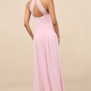 Flowy, pale pink dress with high slit, material twists in the front and wraps for a cute style. Dress was never worn, bought to wear at a summer wedding and never used. NWT