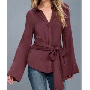 Lulus Mason Burgundy Long Sleeve Tie Front Back Cutout Shirt. Women's Large.