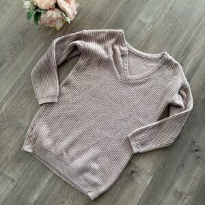 Lulu's Mauve Pink Ribbed V Back Dolman Ribbed Sweater Dress