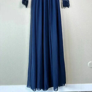 Lulus Maxi Dress Lace Long Sleeve V-Neck Formal Wedding Navy Blue Women's XS