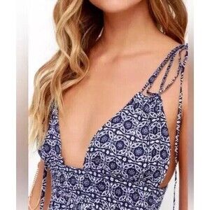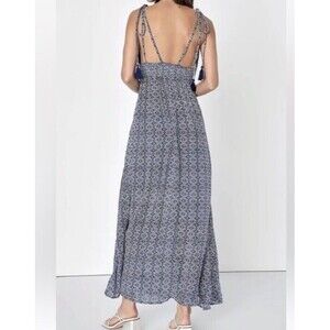 Lulus Maxi Dress Small Blue Field Day Spaghetti Tie-Straps Resort Beach Boho