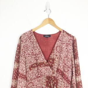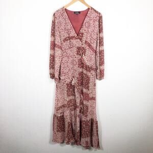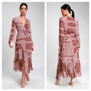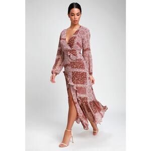 Lulus Maxi Dress Women Medium Rust Red Floral Patchwork Field of Flowers Long