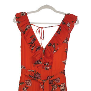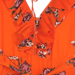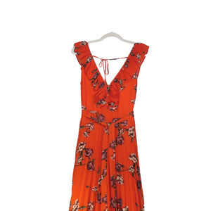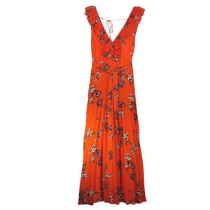 Lulus Maxi Dress Women Size XS Orange Floral Pleated Boho Slinky V Neck and Back