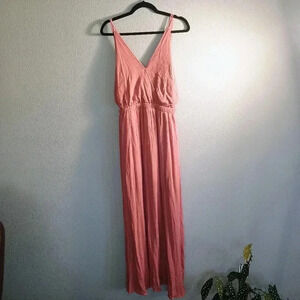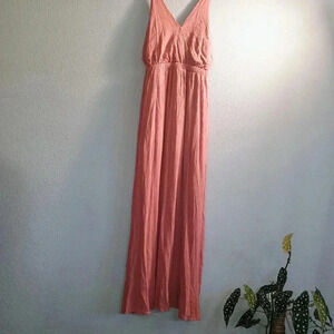 Lulus Maxi Dress Womens Medium Lost In Paradise Rusty Rose Strappy Back Slit