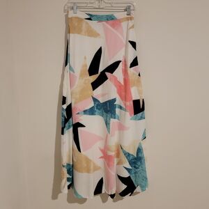 Lulus Maxi Skirt Size Medium M Colorful Geometric Pull On Stretch Long Skirt